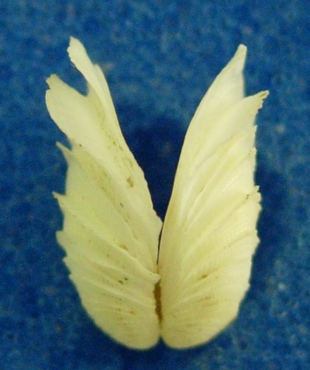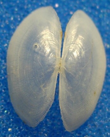 前幾天再次採集發現白色的殼體11mm.只發現這顆.其他都是如上圖黃色殼體.這次仔細觀察發現一有趣現象.在水中活體是如圖左般展開雙殼軟體吸附在石頭上。