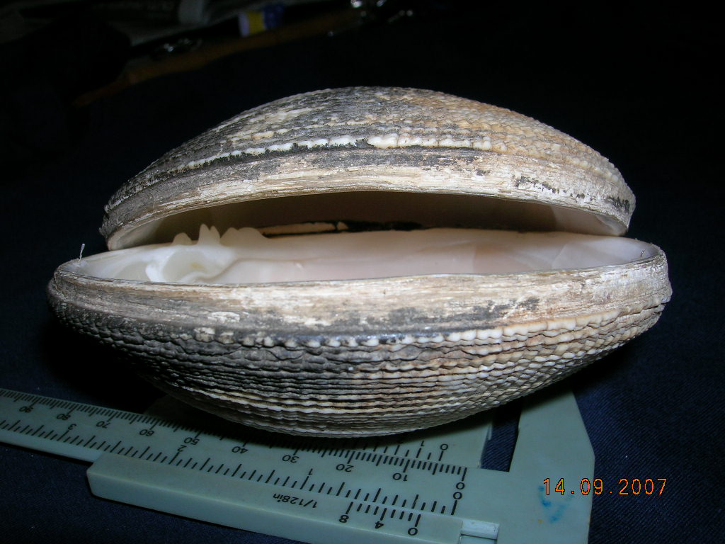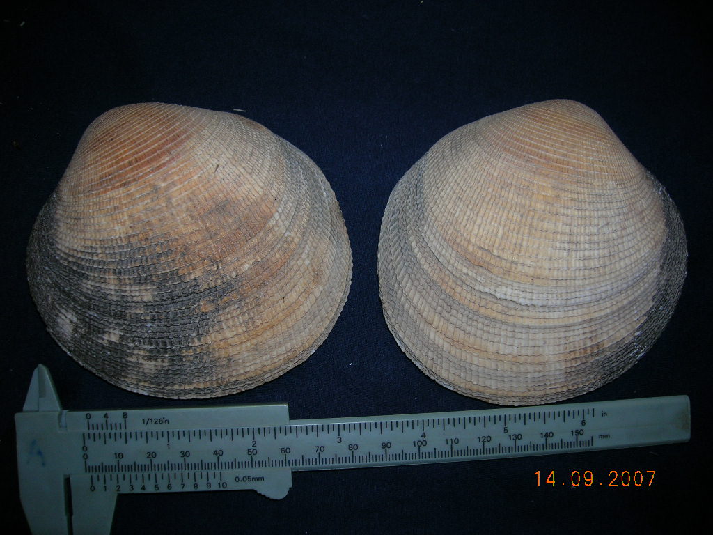 這種蛤很大很厚。去年我曾收到一個活殼,小的,才63mm。