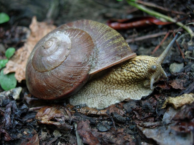 我的視力較差加上排灣栗蝸牛有保護色,與枯葉混在一起,不容易採集到,當時還是一位警察局的督察山友幫忙找到.