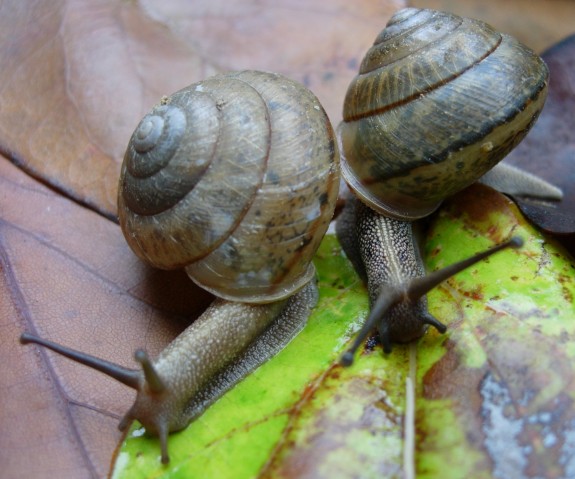 沒有見到耶.只找到上圖那種.一顆台灣山蝸牛活殼.及一些栗蝸牛死殼.臨時有事喝了一杯東山咖啡.隨即下山回家.