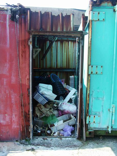 石門廢貨櫃旁常有漁民擺放的東西 有一次在一個廢棄的小屋裡看到一些漁民丟棄的殼 有白法螺 椰子螺 榧螺等一大箱 都長灰塵了 問在旁邊補網的漁民和船長 也不曉得是誰的 不敢給人家幹走