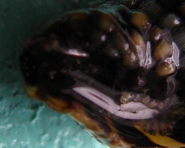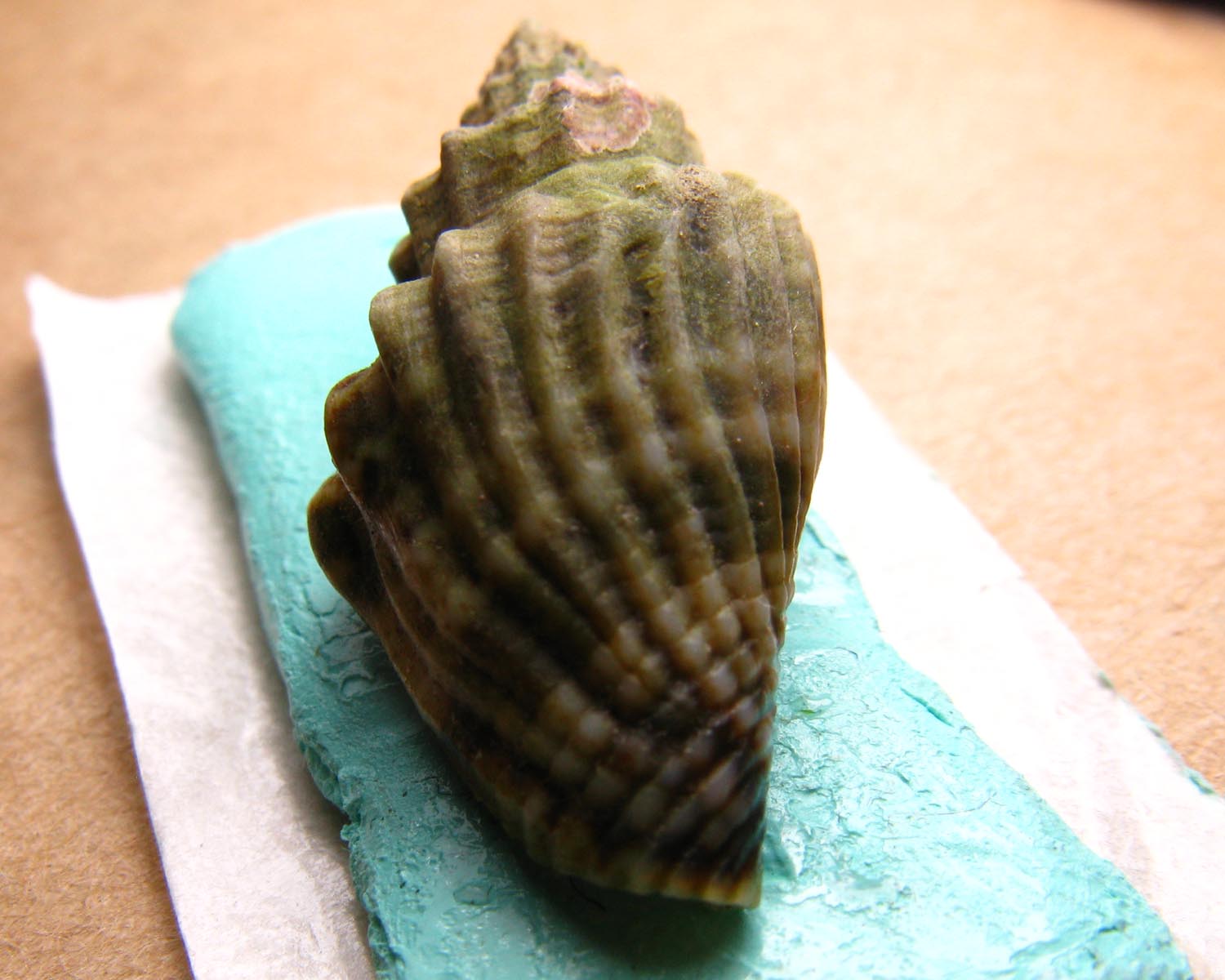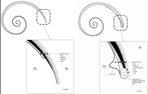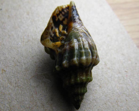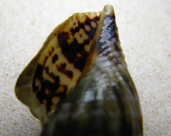您的殼1,外唇直接可以看到位在外面殼表的黃色與深色殼質,表示白色內面的菱柱層還未覆蓋上.是幼貝.