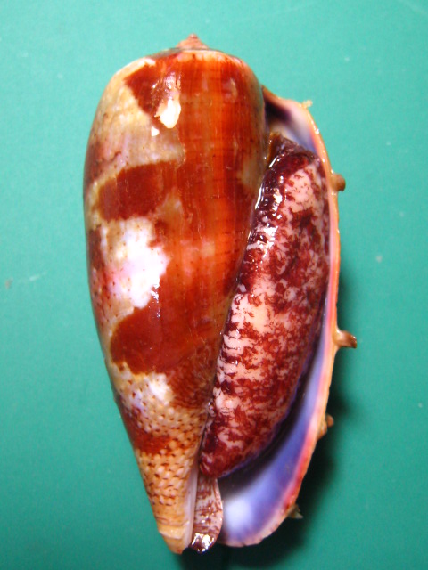 從一堆圓蠑螺裡發現的,殼長58mm,除本顆外另挑選一顆織錦芋螺與二顆阿拉伯寶螺,共計56$!真是爽翻了.