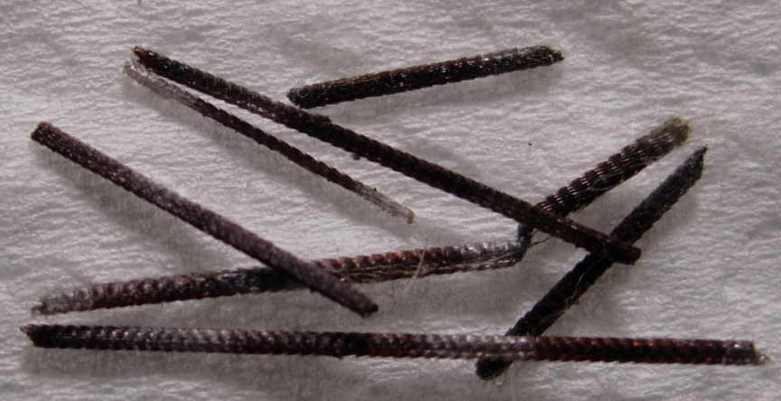 今天下午潮汐剛好.跑到七股潟湖裡面去尋貝.收穫有腰斑寶螺.蜜蜂.小白法螺.粗肋.蟹螯織紋螺等...還有魚數隻。不過在水中不知摸上何種生物.手一陣刺痛.棉質手套黏著好多根如圖的黑刺.立刻奔回岸上脫下手套.手掌被刺破三處.急忙拔刺擠血.刺很脆.刺徑約0.5mm至0.7mm.請問版上各位大大可知這是何種生物的刺.有毒否?