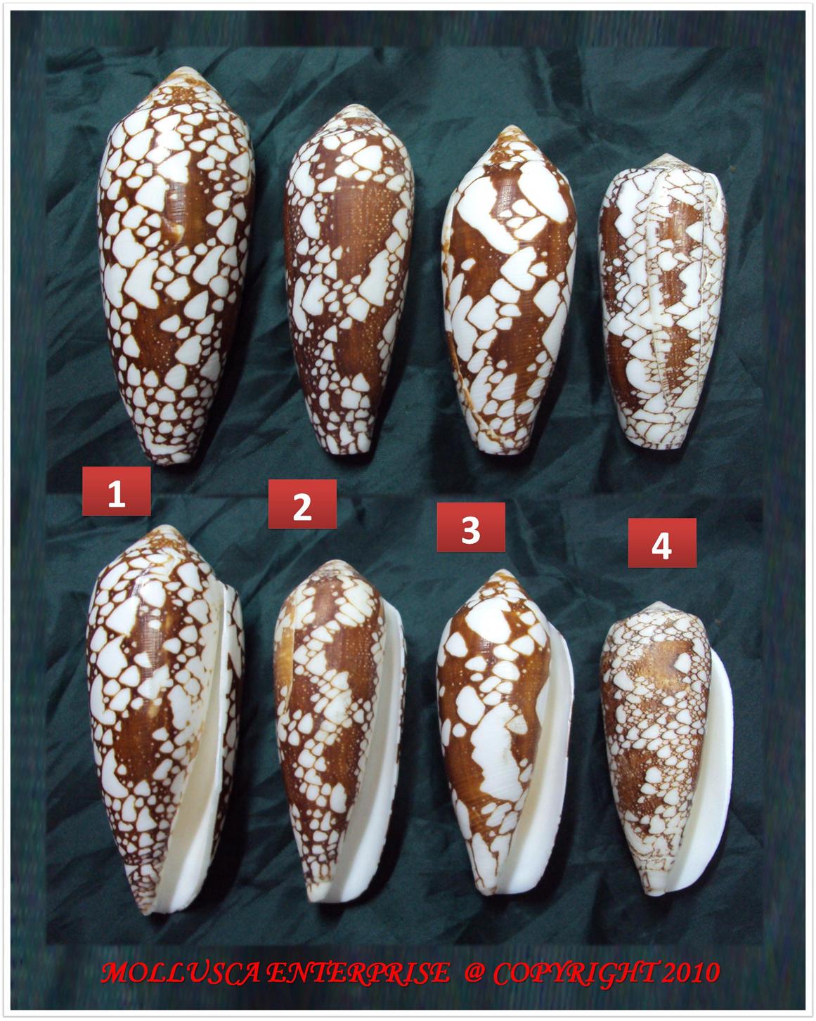 下圖1,2,3是Conus episcopatus; 4是Conus omaria