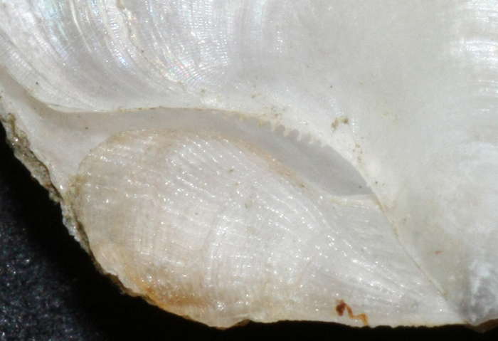 有海扇常有櫛齒構造,殼內亦有聯繫兩片殼的黑色內韌帶,這些都是海扇蛤擁有的特徵