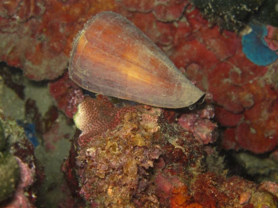 可能是紫霞芋螺或近似種, 雖然有毒, 但毒性不強, 在芋螺中, 毒性較強的有殺手芋螺、細線芋螺、鬱金香芋螺、大理石芋螺、寡婦芋螺、織錦芋螺家族等