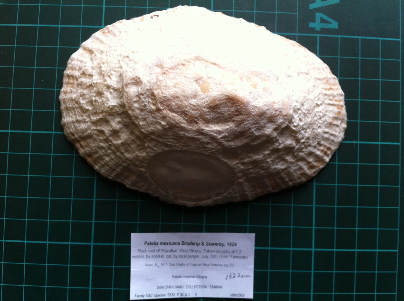 132.2mm大王笠螺, 墨西哥產, 約10年前購自目前國內最權威的貝類專家之一. NT$ 1480.