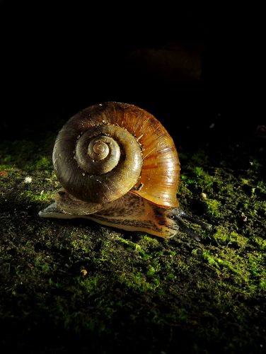 屏東山區的台灣山蝸牛,螺塔呈扁型: