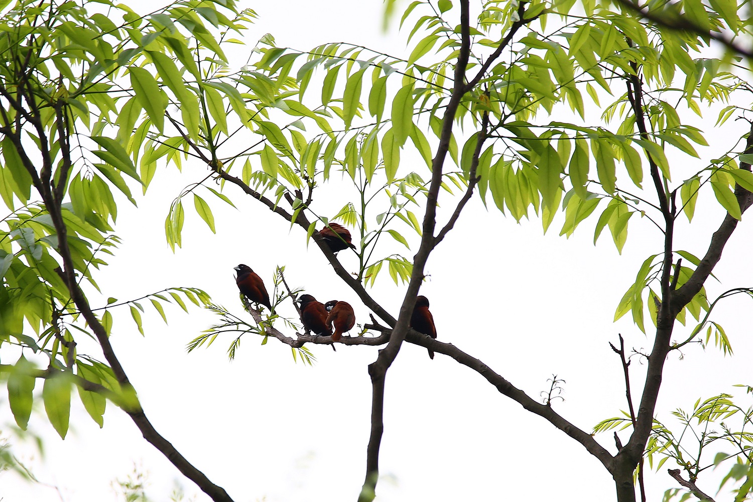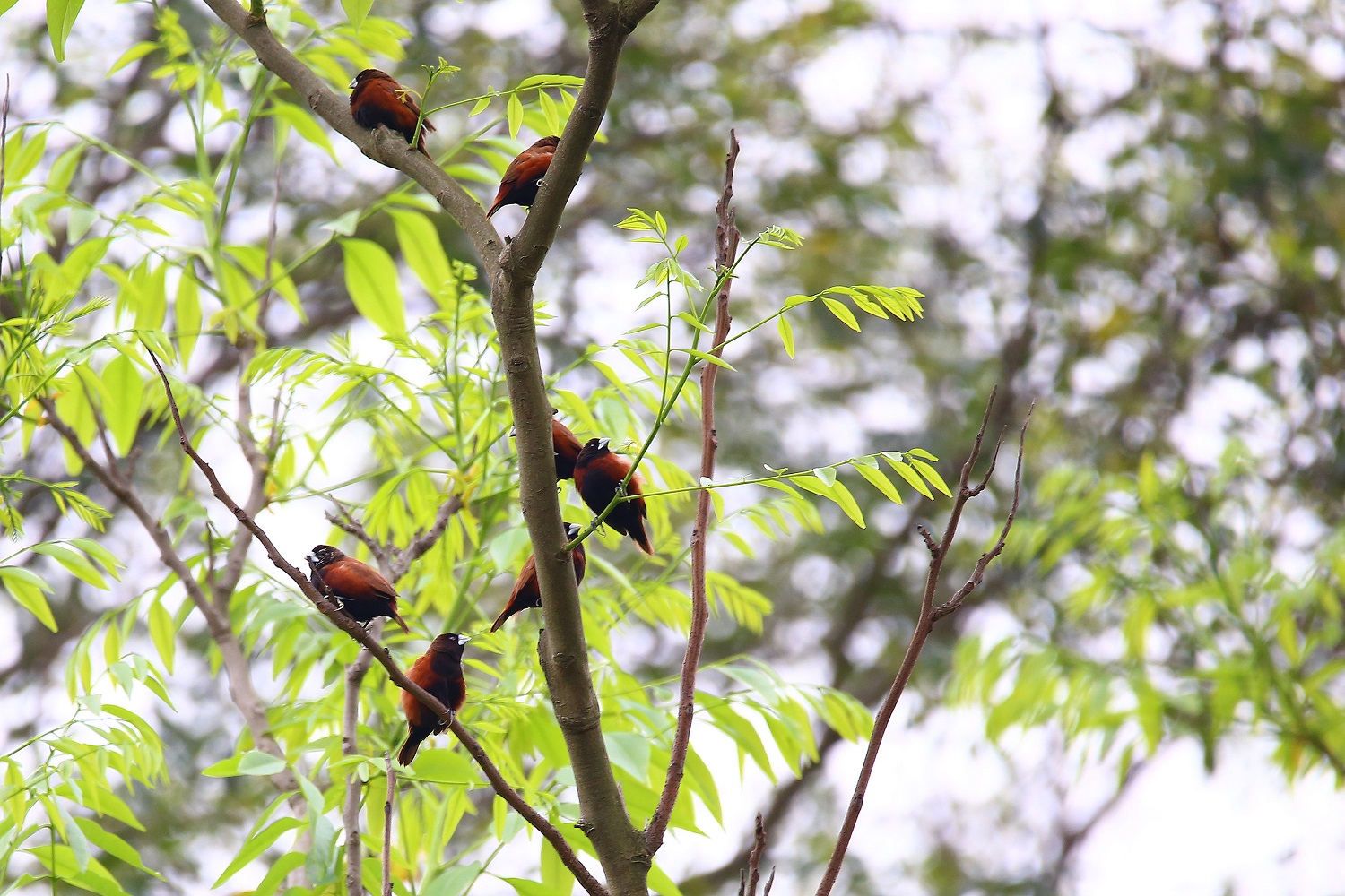 黑頭文鳥有群聚性, 有時也會混在其他鳥種裡面, 屬草原性低海拔留鳥, 植物園這群黑頭文鳥大約有30隻, 也不知道從那來的, 我只看過一次, 之後再也沒見過了。