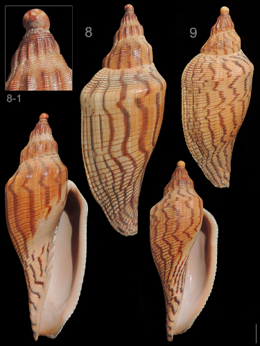 3螺塔高聳,典型具縱肋的哈密F. hamillei。132mm,東海陸棚100m