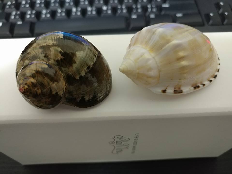 左邊是芮氏蠑螺, 右邊斑點小鬘螺