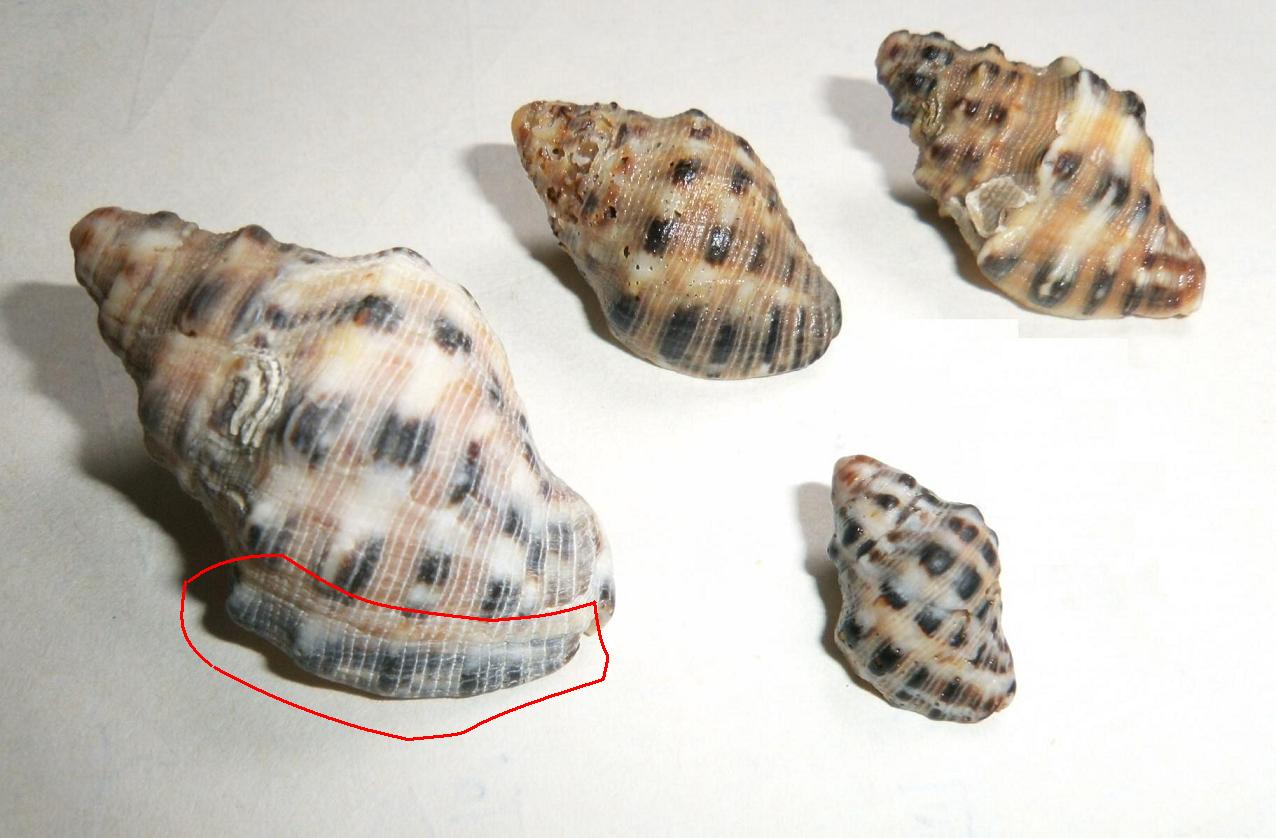 貝殼受傷或休眠之後再長的殼, 就會在表面產生一條或數條生長紋, 生長紋有時是凹下去, 有時是凸出來, 有時只是單純一條紋路, 而之後再長殼有時也會與原來的顏色不一樣