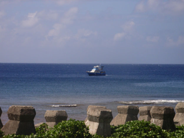 23.遠眺綠島, 中間紅色電信塔下面就是我們住了4天3夜的地方