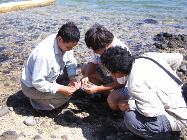 這次去綠島生態調查4天都在下雨, 真慘, 成果不如預期, 以前在潮間帶滿地的黃寶螺, 這次居然只看到2顆, 白肋蜑螺的密度也下降到原來的一成不到, 雪山寶螺也只有原來的一成而已, 數維持不變的是虛線蜑螺、多彩扭腰蜑螺、血斑鐘螺、各式玉黍螺及豹耳螺, 難道貝類的數量與天氣有關乎? 大白沙的迷你貝數量也大幅減少真令人遺憾, 難道會與今年的颱風多有關乎? 與天氣變冷有關乎? 苦惱呀!