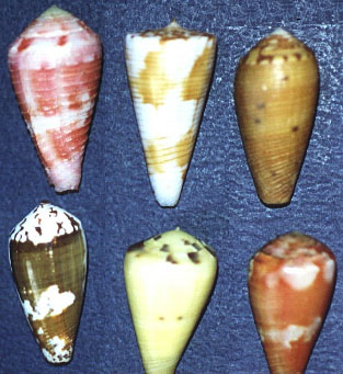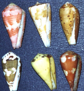 上中間應該是 Conus shikamai (Coomans, Moolenbeek & Wils,1985)
