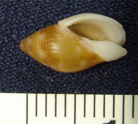 這是04.12.11.在後灣撿的織紋螺,查了5100種後覺得都不太像,seashell2392認為是Cyllene concinna(A. Adams,1842)或其類似種C. pulchella.可是這兩者色彩都很花,和這個標本的純咖啡色底差很多.請問這是什麼?