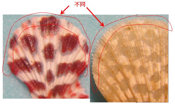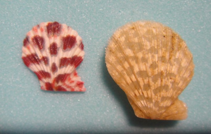 扇貝的幼貝與成貝, 花紋差異很大, 我覺得很可能是幼貝
