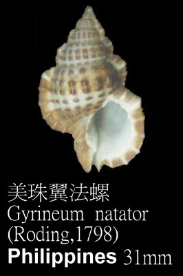 應該是美珠翼法螺,正常的殼接近黑色,這一顆顏色淡化.盛產時,在北桃園可以撿上一袋,詳細資料請參考賴景陽《貝類二》. |